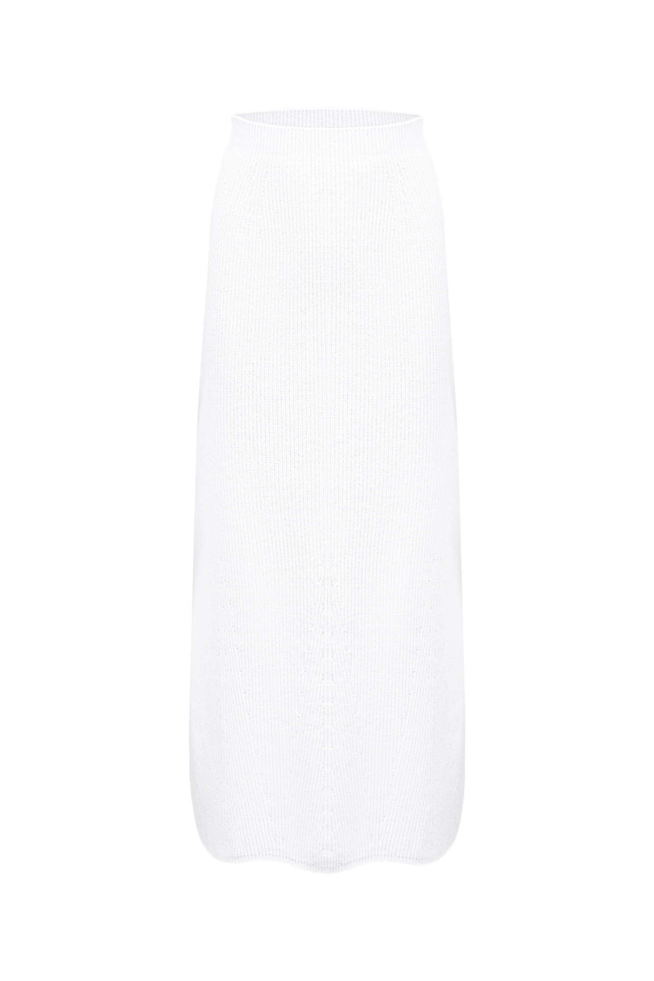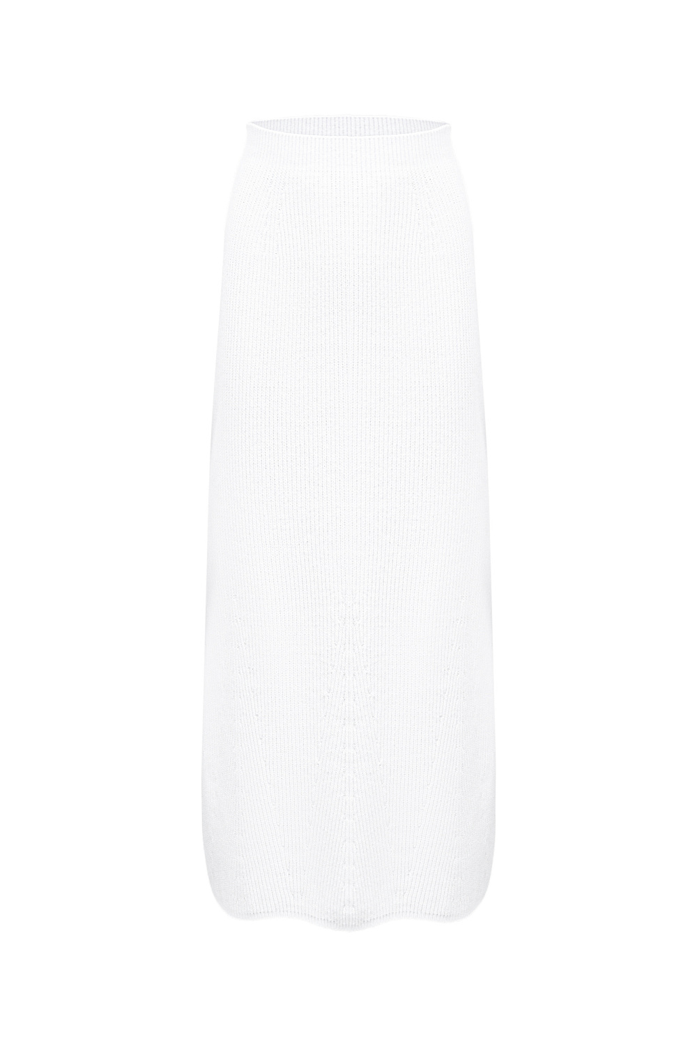 Loose knit maxi skirt with elastic ribbed waistband. You can complete the look with a vest in the same style.