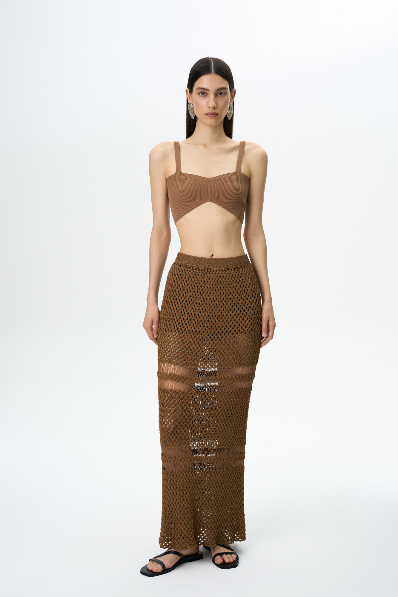 Open knit maxi skirt. Fitted silhouette with striking openwork effect. You can complete the look with a top in the same style.