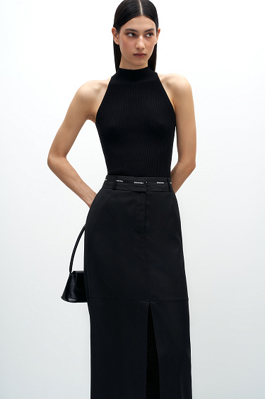 Viscose maxi skirt. A-line design with belt loops and a zipper and hook-and-eye closure.