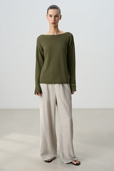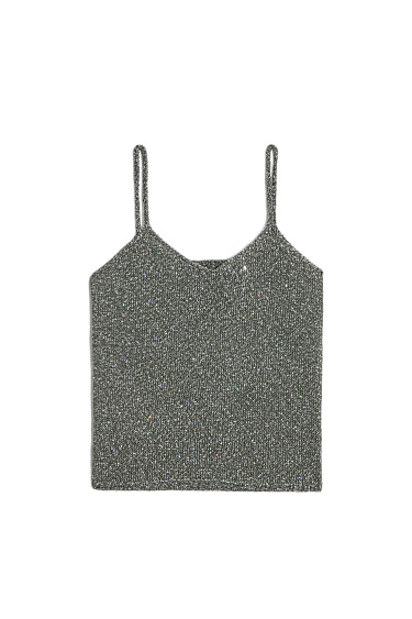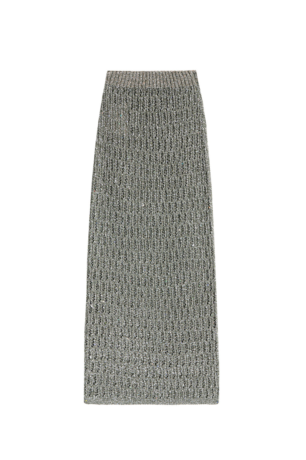 Openwork midi-length skirt made of cotton with the addition of viscose. Fitted to fit, with a wide ribbed elastic waistband. The product is decorated with holographic sequins. No lining.