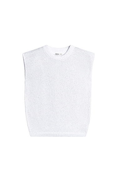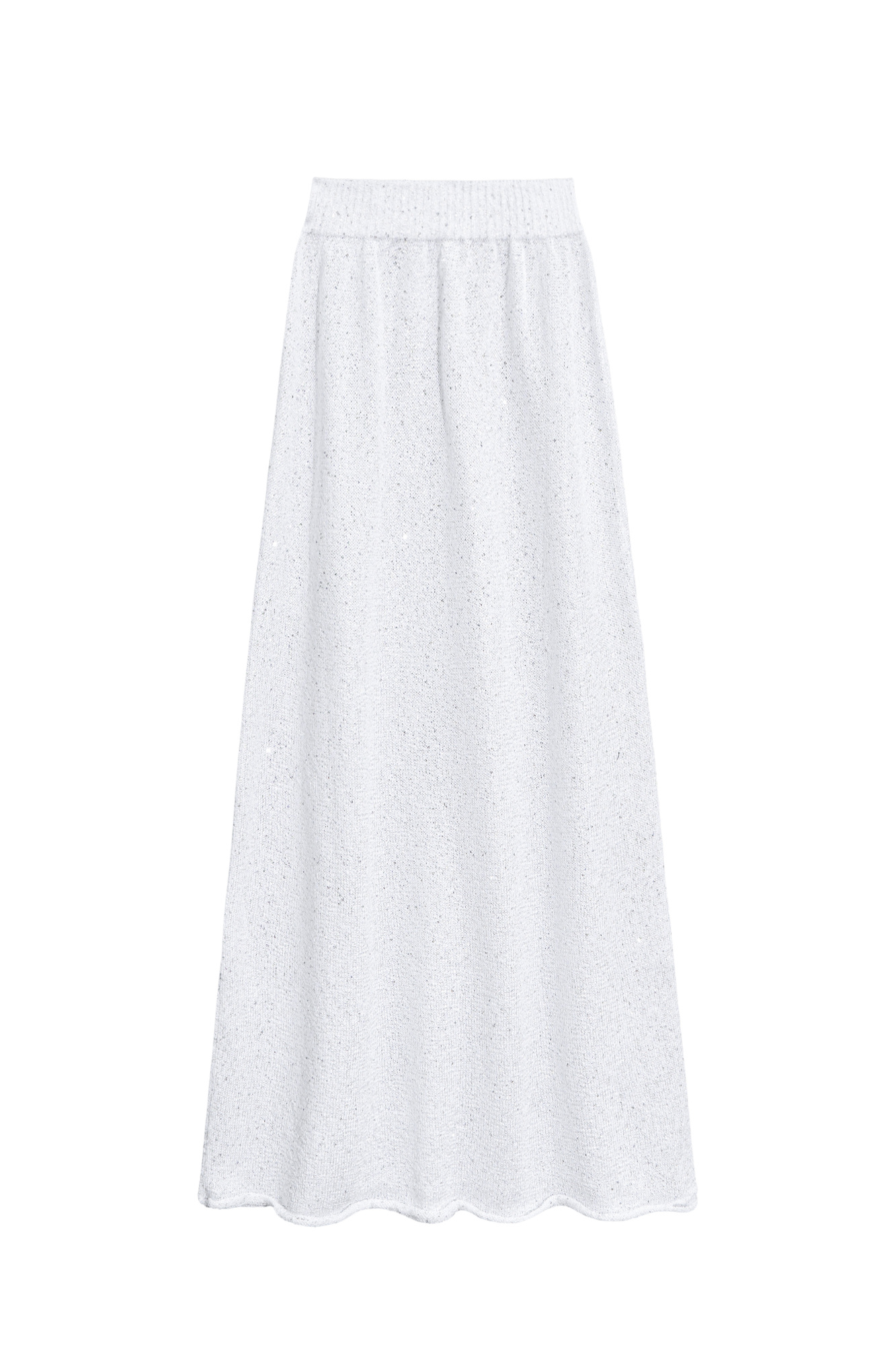 Maxi-length knitted skirt made of cotton with viscose. A-line model with a wide elastic waistband. The product is decorated with small sequins.