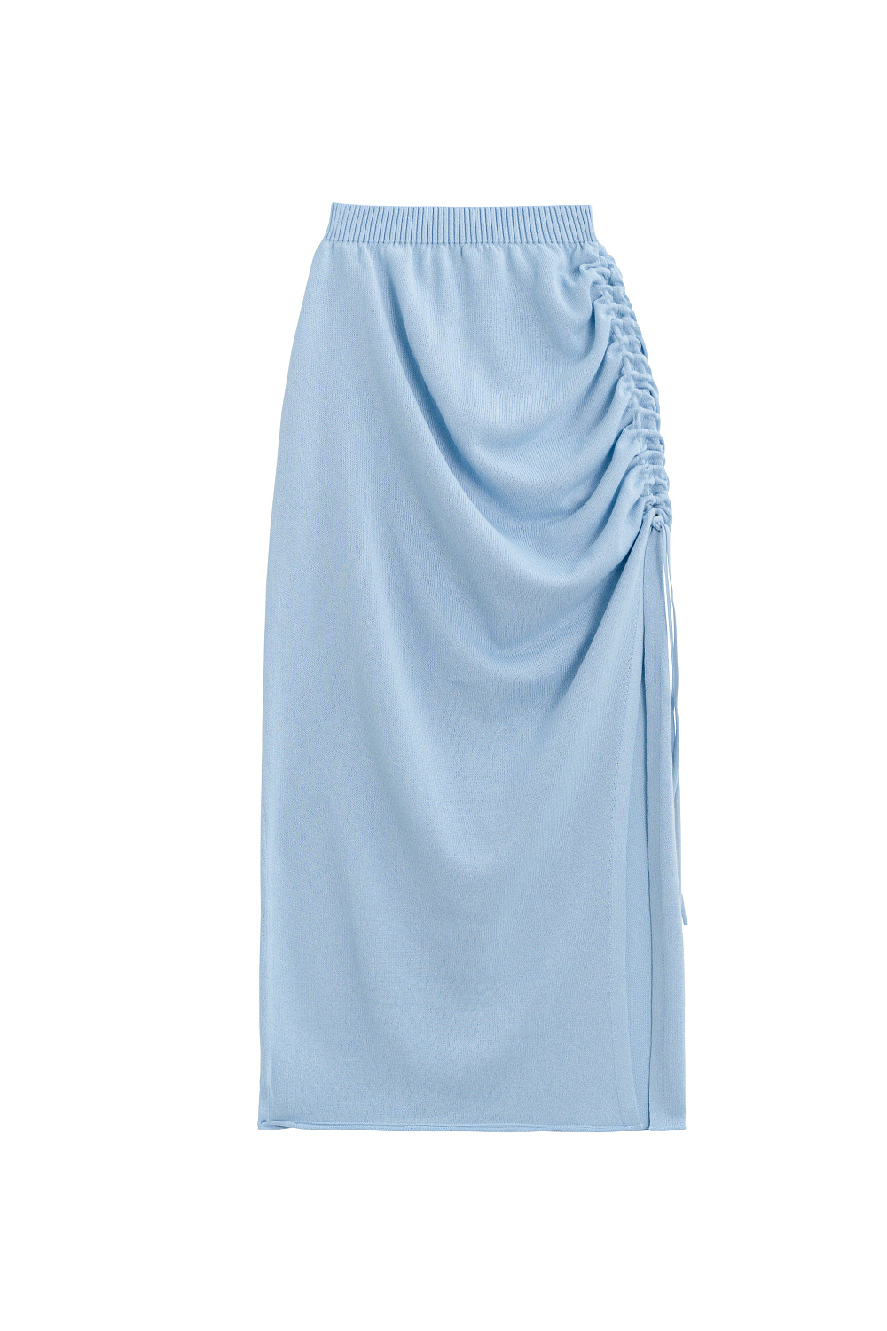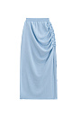 Maxi length skirt made of viscose. The model has a fitted silhouette with a wide elastic waistband, asymmetrical drapery and a drawstring.
