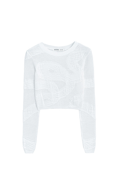Organic cotton knitted maxi skirt. Fitted with a wide ribbed elastic waistband and a slit at the back. The product is decorated with a jacquard pattern in the shape of a snake. No lining.