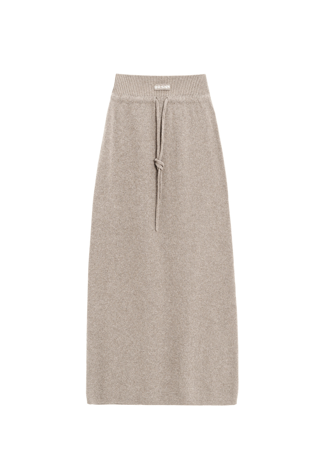 Maxi-length knitted cashmere and wool skirt. Fitted with a wide ribbed elastic waistband, a drawstring and two patch pockets at the back. The product is decorated with a knitted logo.