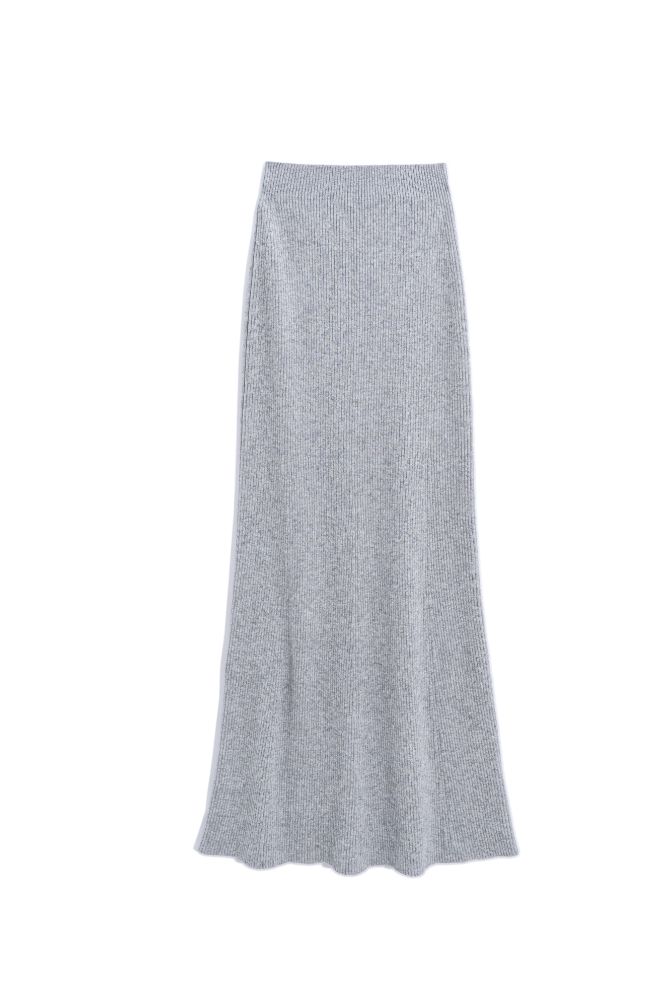 Maxi-length knitted cashmere and wool skirt. The fit model is made in a wide rib.