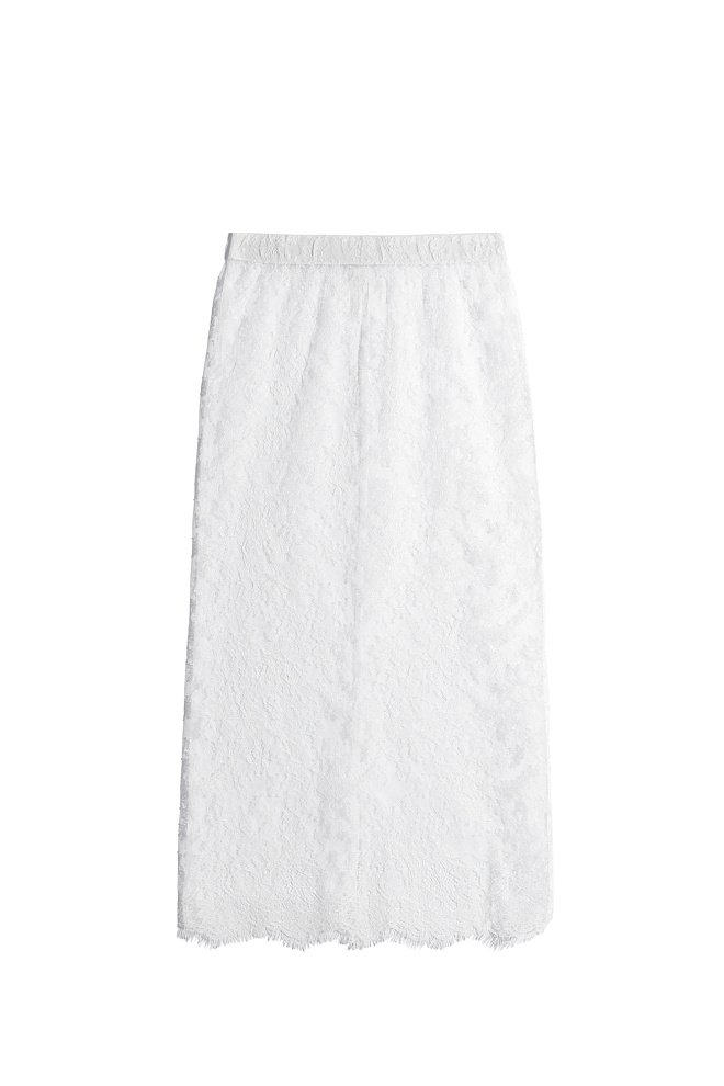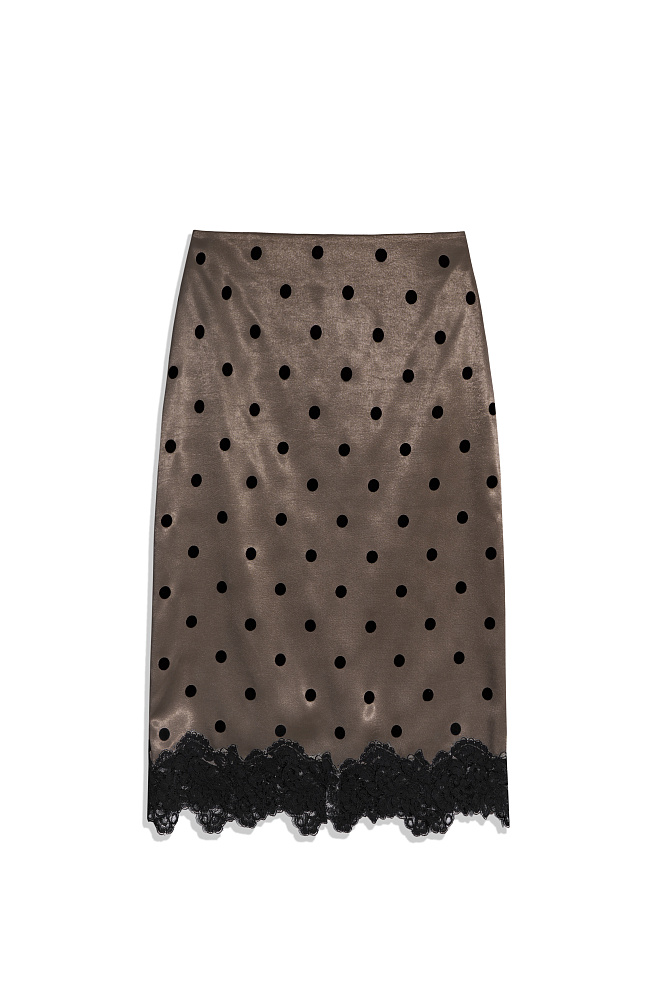 Satin midi skirt with lace