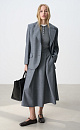 Midi length wool skirt. A-line model with large oblique pleats at the front. Zip fastening at the back. The product is unlined.