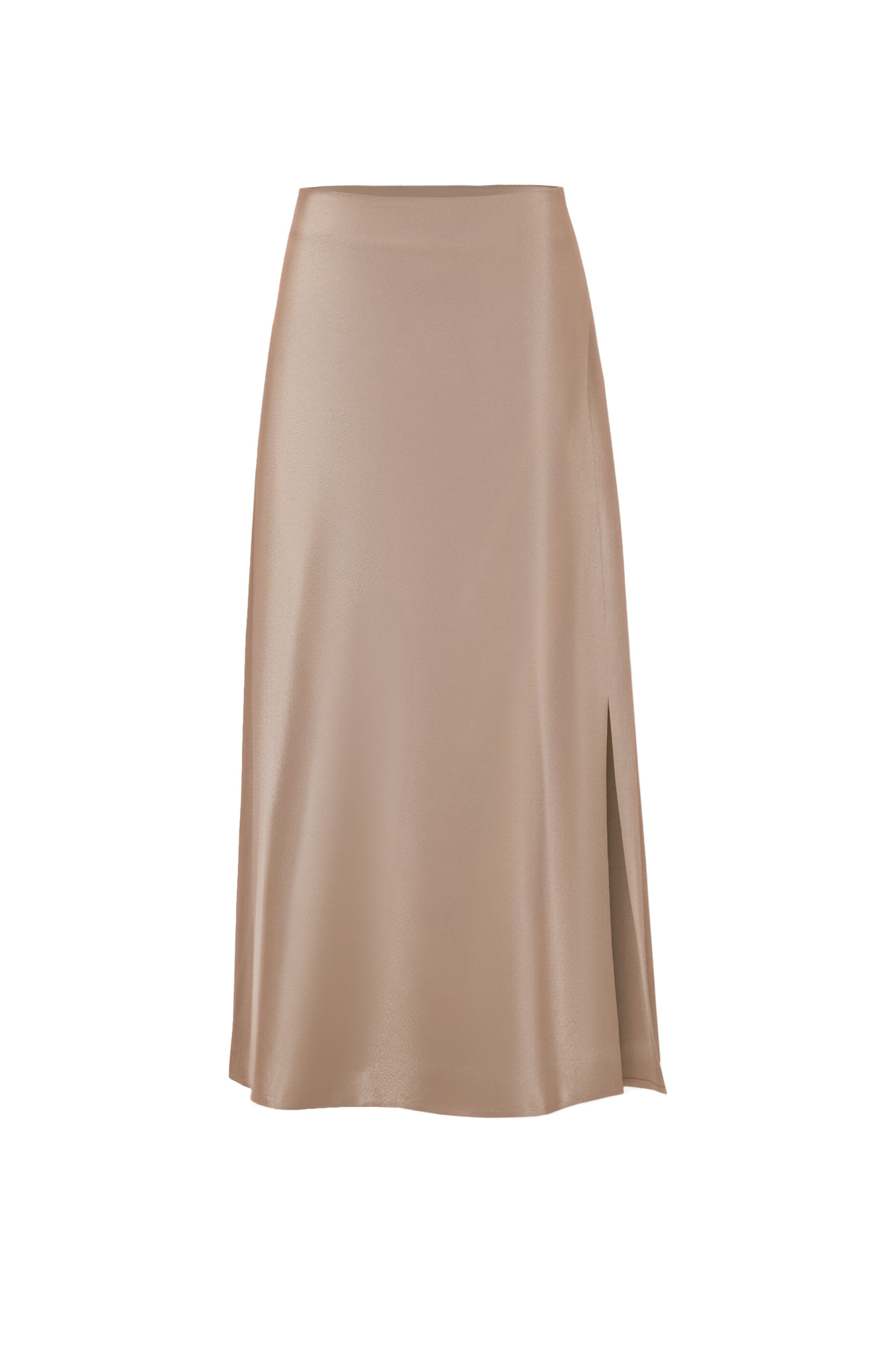 A light and delicate midi-length satin skirt creates a sophisticated and at the same time non-trivial image.