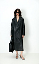 Calf-length faux leather A-line skirt with side pockets. Invisible zipper and button closure.The skirt emphasizes the waist and visually lengthens the silhouette.