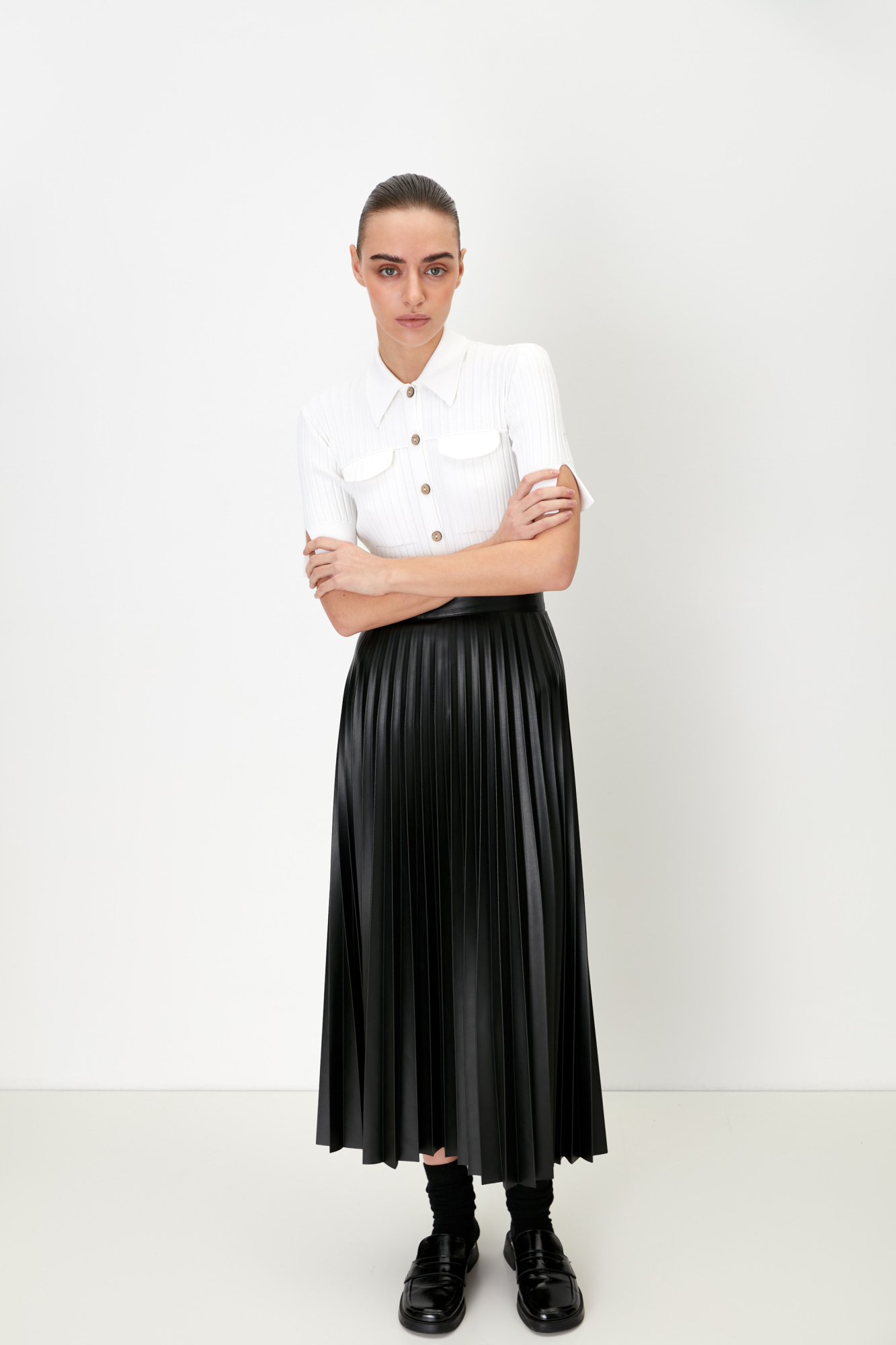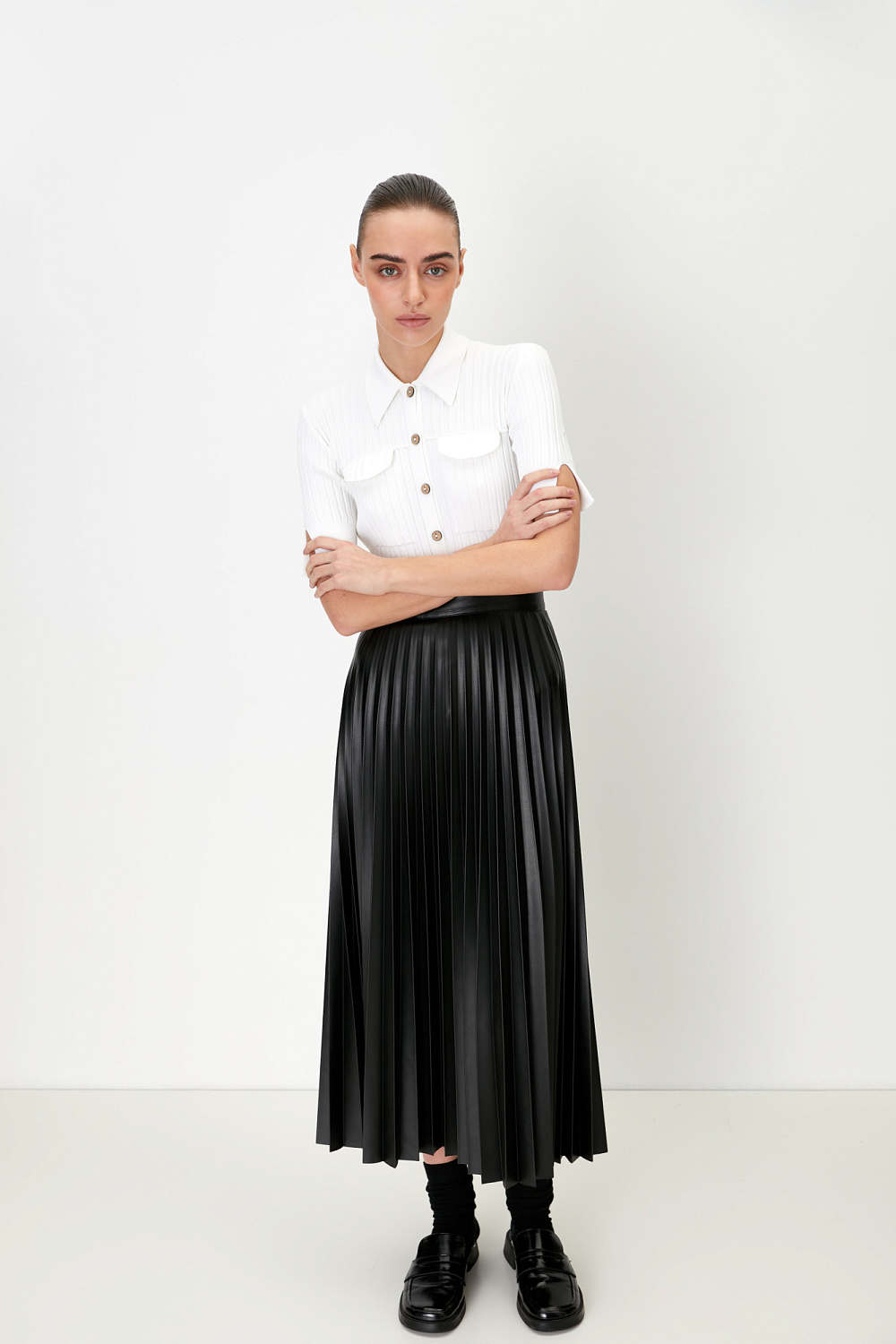 Faux leather pleated skirt