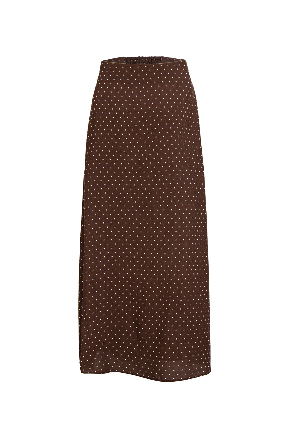 Printed viscose midi skirt. Straight silhouette model with elastic at the back for fixation.