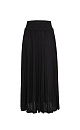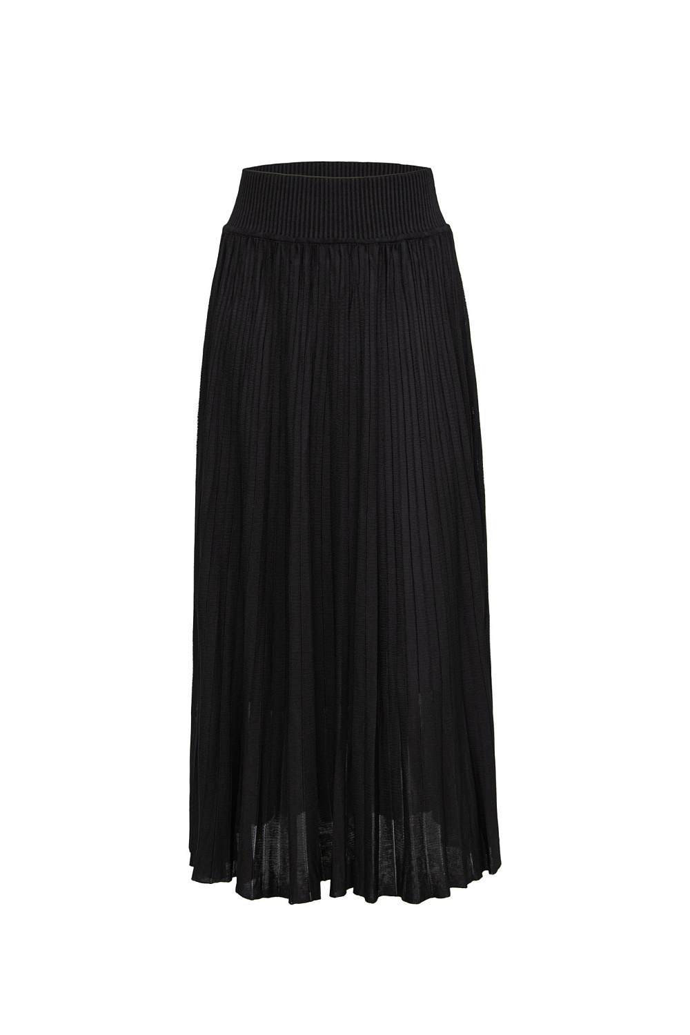 100% viscose pleated midi skirt with a ribbed elastic waistband.