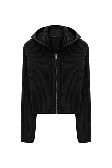 Knitted midi skirt with a front slit. A-line style with elastic ribbed waistband and zip fastening.