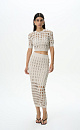 Large openwork weave pencil skirt with lining. Wide elasticated belt. Lined. You can complete the look with a top in the same style.