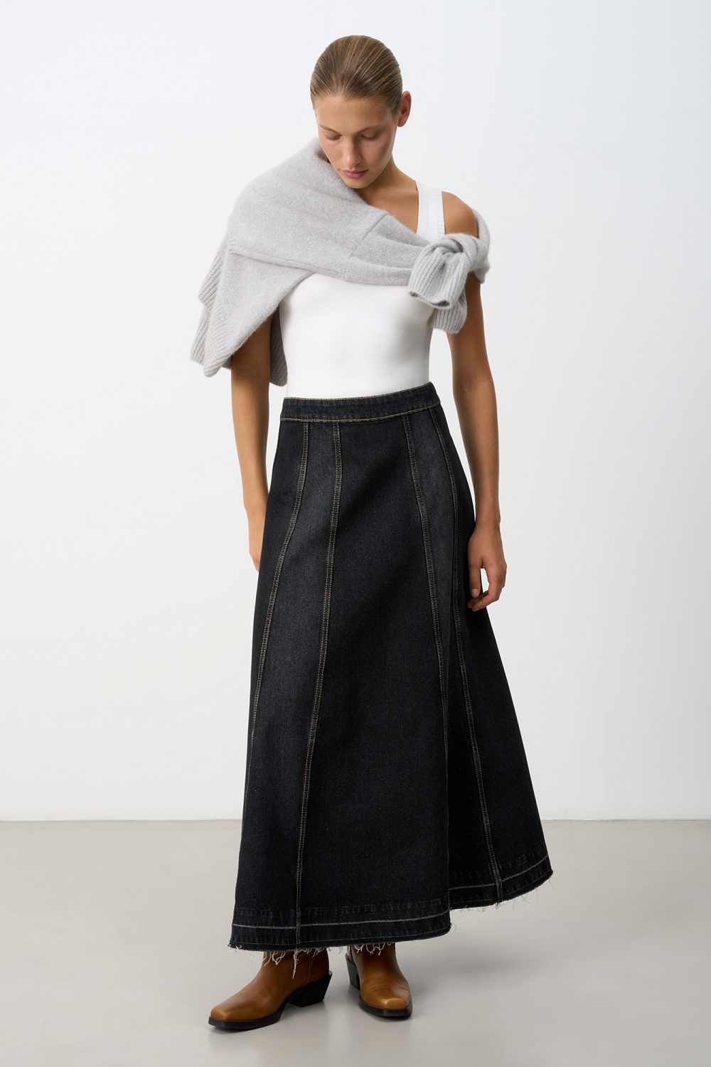 Denim midi skirt