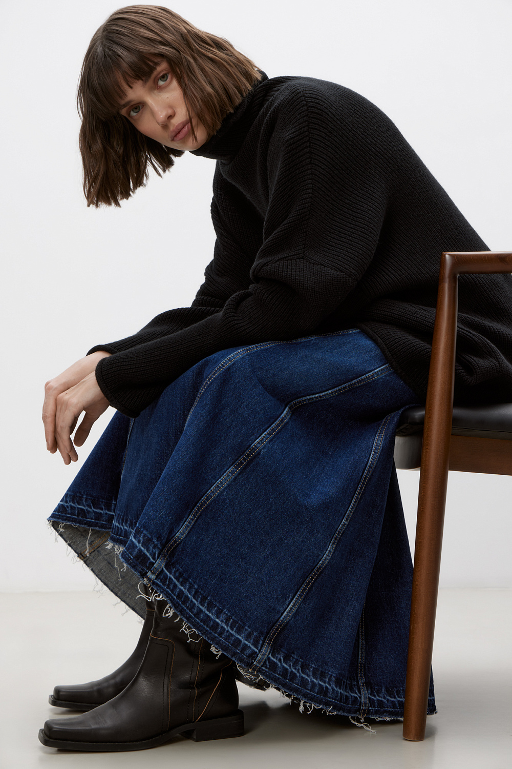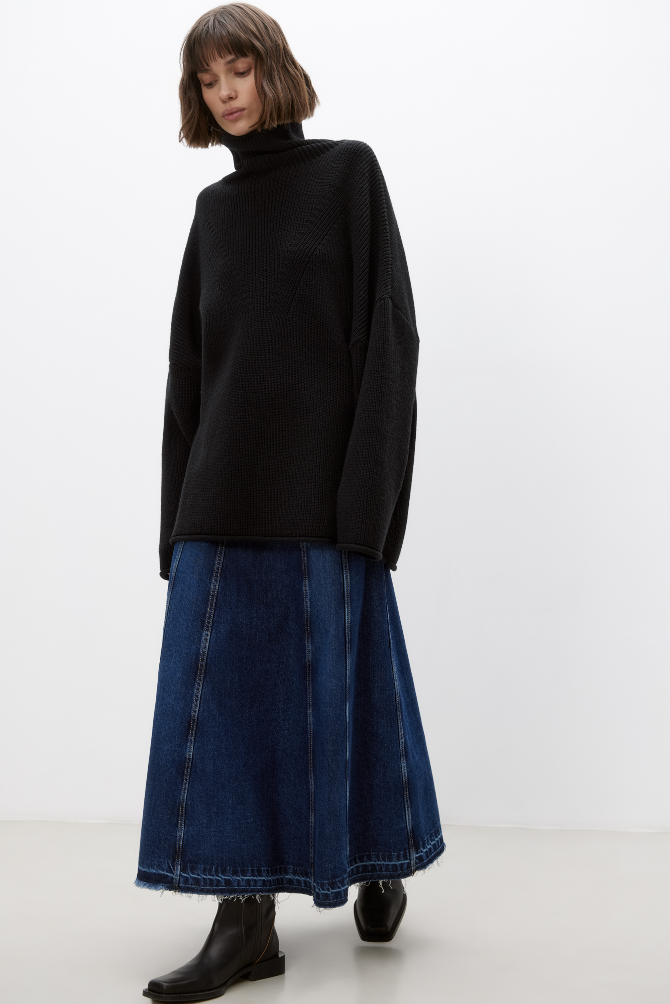Denim midi skirt