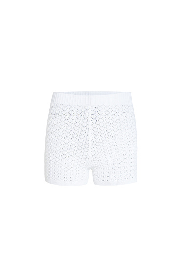 Semi-sheer openwork midi skirt. Features fitted silhouette with an elastic ribbed waistband. Pair perfectly with a matching jumper.