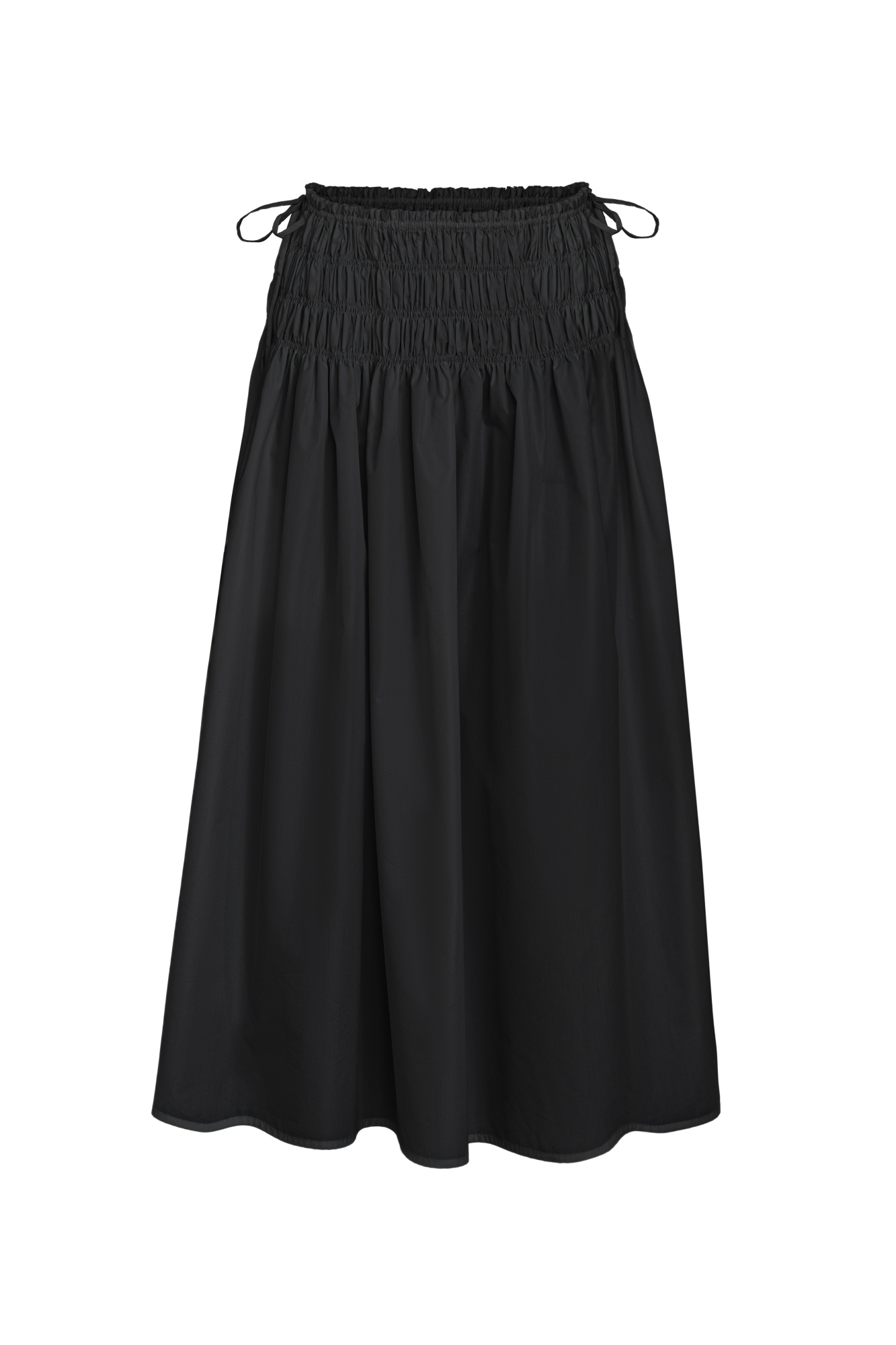 Loose midi skirt with elastic gathers and a drawstring waistband. You can complement the look with a top in the same style.