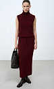 Midi length knitted skirt. Model of a straight silhouette with an elastic waistband with a drawstring. You can complement the look with a vest in the same style.