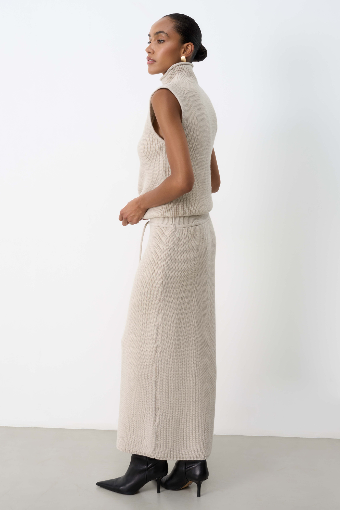 Wool knit midi skirt