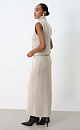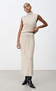 Midi length knitted skirt. Model of a straight silhouette with an elastic waistband with a drawstring. You can complement the look with a vest in the same style.