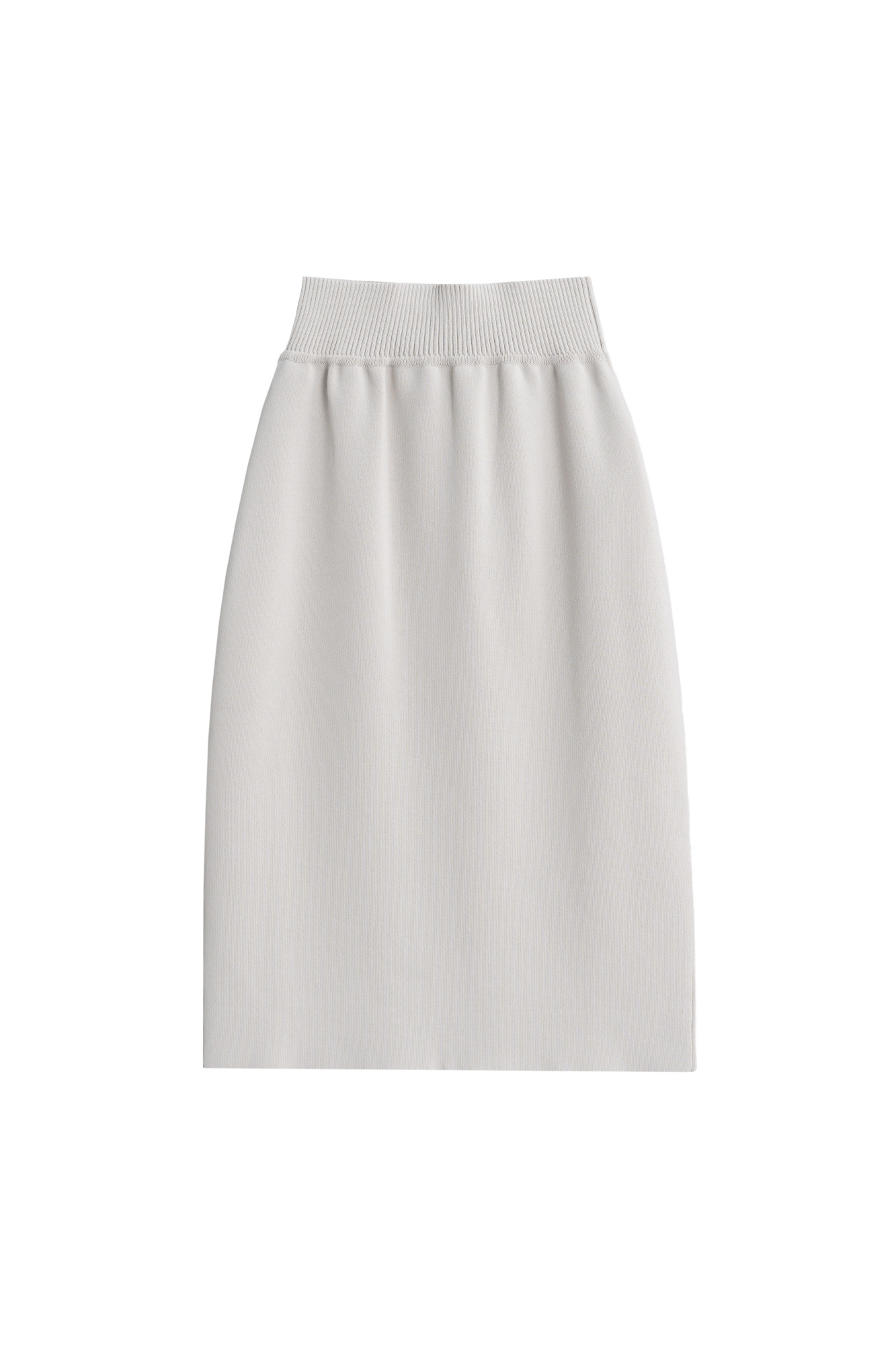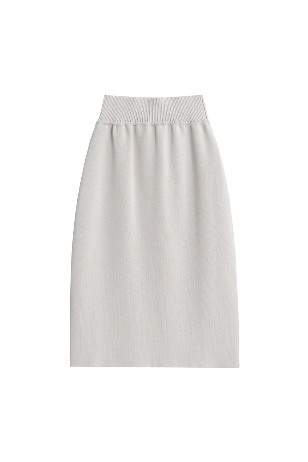 Knitted midi-length viscose skirt. A fitted model with an elastic waistband and a low slit at the back.