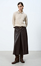 Eco-leather midi-length skirt with counter pleats, pockets and belt loops. Side zip fastening. The product is unlined.