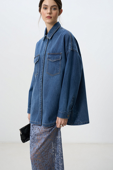 Midi length skirt made of cotton lace. The model has a straight silhouette with a slit at the back and a zipper closure. The product is unlined. You can complement the look with a shirt in the same style.