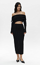 Knitted midi-length skirt with lurex. Fitted silhouette with a slit at the back and an elastic waistband.