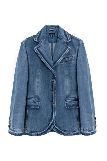Pleated denim skirt made of 100% cotton. Flared silhouette with side zipper and button closure. Belt loops on the waistband.