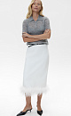 Straight midi skirt made of viscose. The model has a straight cut, with a slit at the back and a zipper closure. The product is decorated with ostrich feathers at the hem. The ribbon with feathers is detachable.