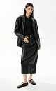 Midi-length skirt made of soft double-sided eco-leather. Straight cut model with a slit at the back, pockets and belt loops on the waistband. Button and zip fastening.