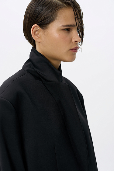 Midi length wool skirt. The model has a straight cut, with two longitudinal pleats on the side, a double waistband with belt loops, a slit pocket and a zipper closure. The product is unlined.