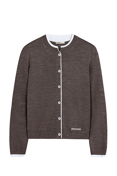 Midi-length pleated knitted skirt made of wool. A-line model with wide pleats on the yoke complemented by a lace. The yoke is made of rib and decorated with a stripe of a contrasting color and a branded label on the front.