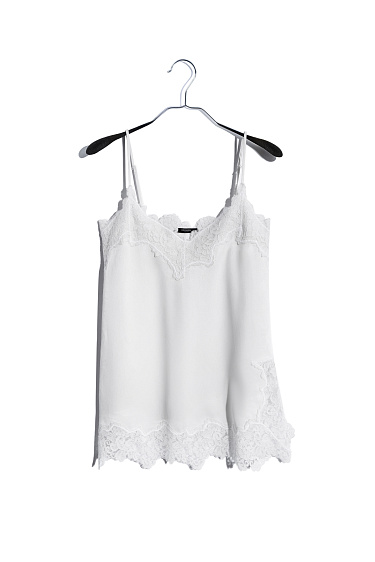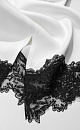Midi length skirt made of satin viscose. The hem of the product is decorated with thin lace in a contrasting color. Concealed zip fastening.