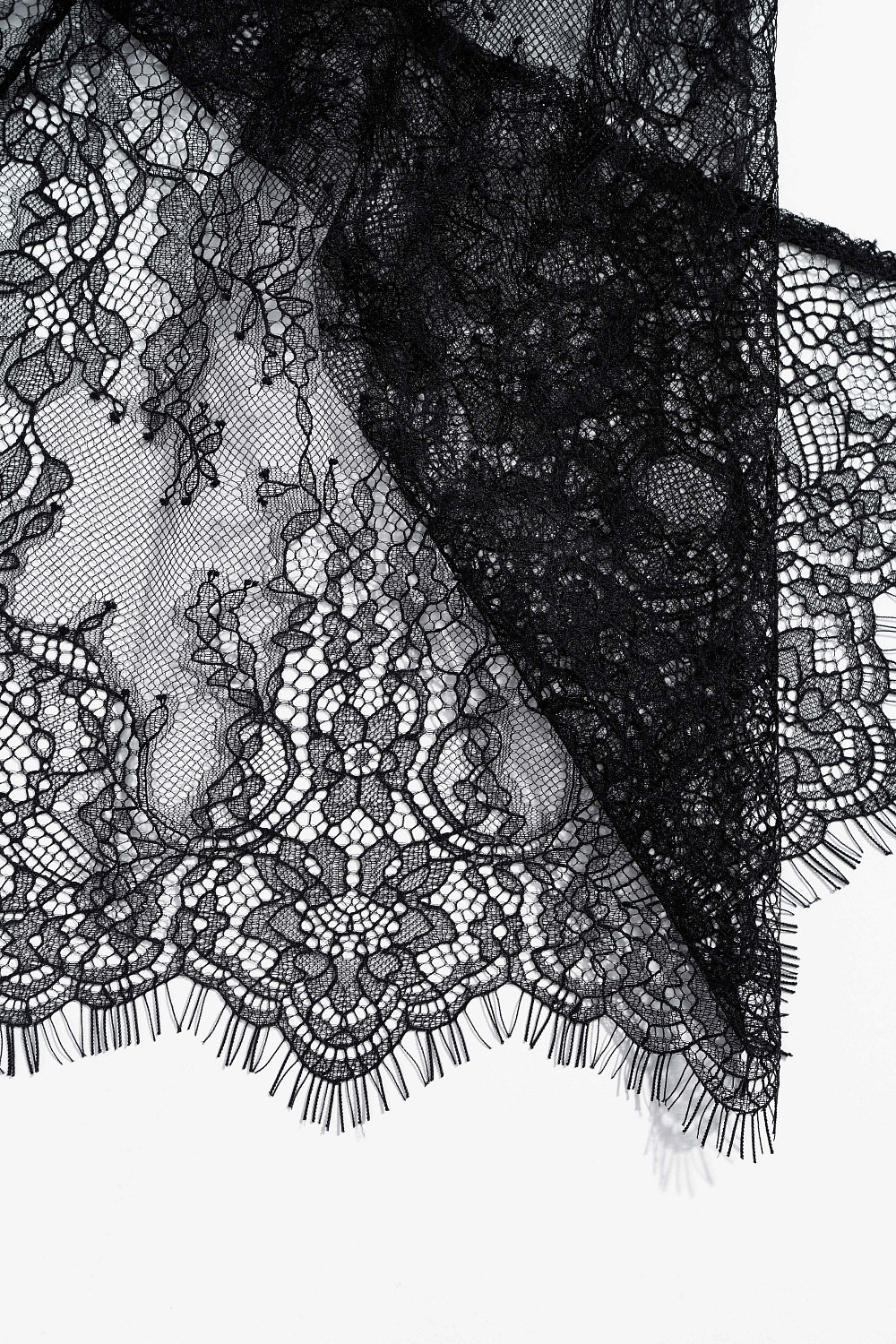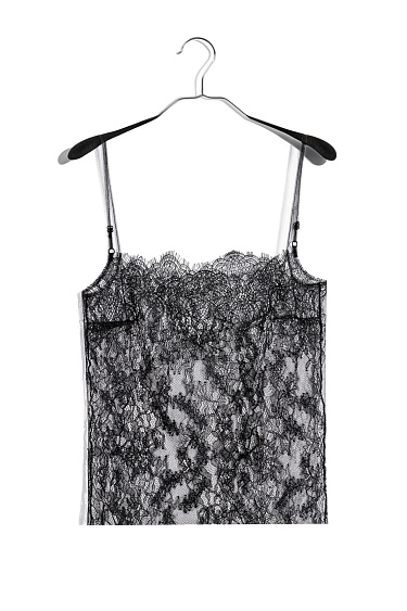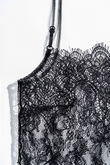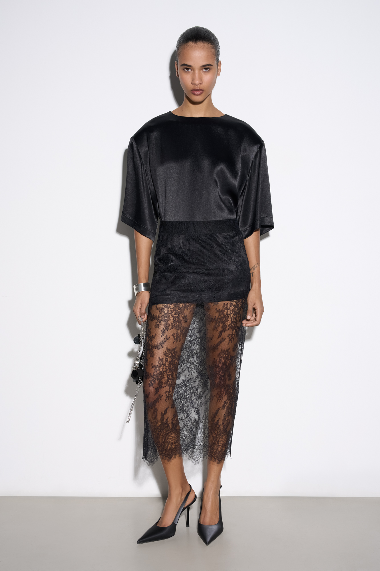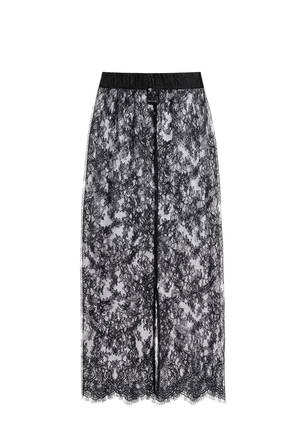 Midi-length skirt made of thin lace. Model with a high slit at the back and a hidden zip fastening. The product is made without lining.