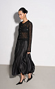 Midi-length balloon skirt made of satin fabric. The model is made in a large fold. Concealed zip fastening.