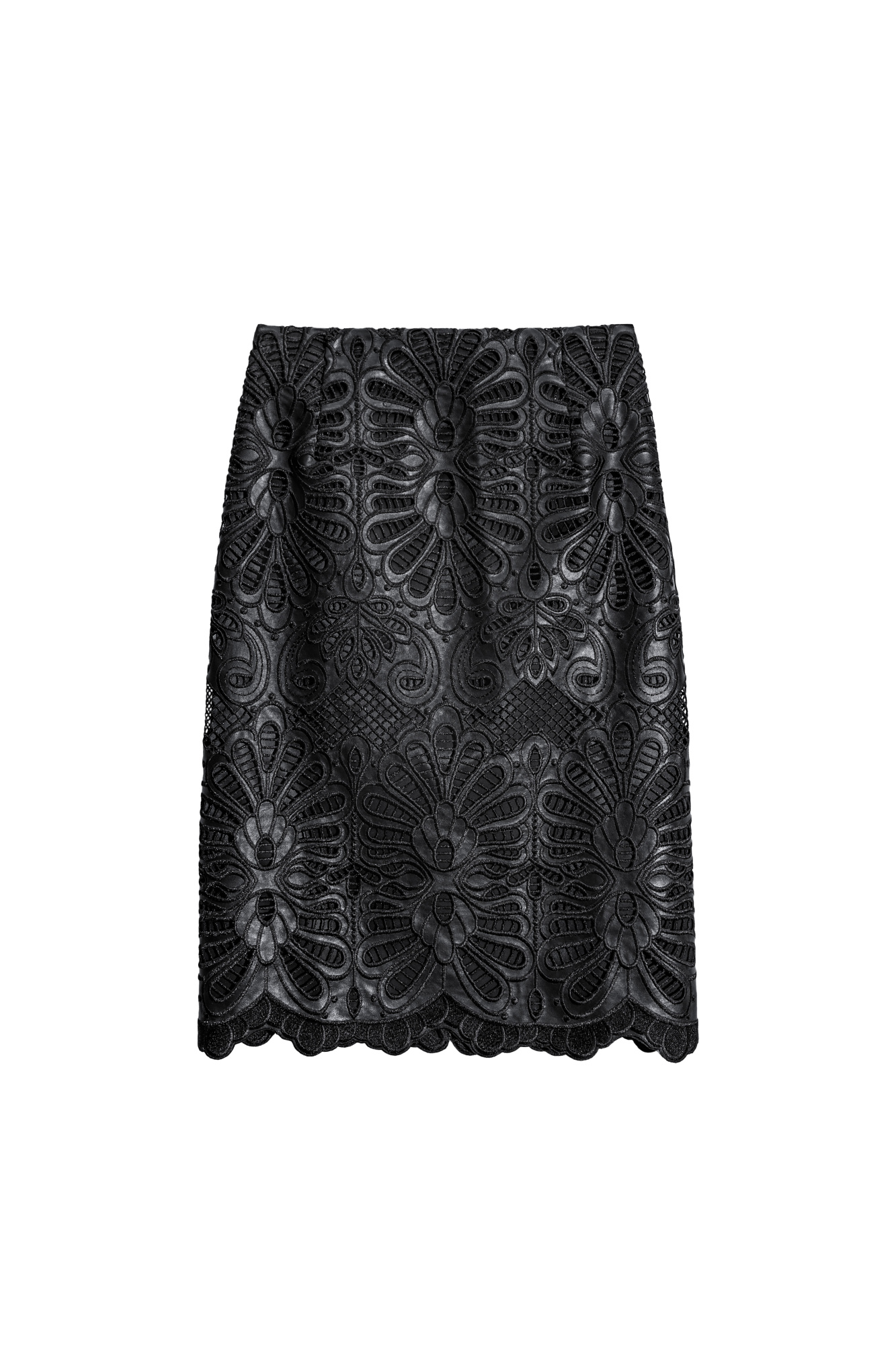 Midi-length skirt with eco-leather lace. Fitted silhouette with zip fastening at the back. The product is lined.