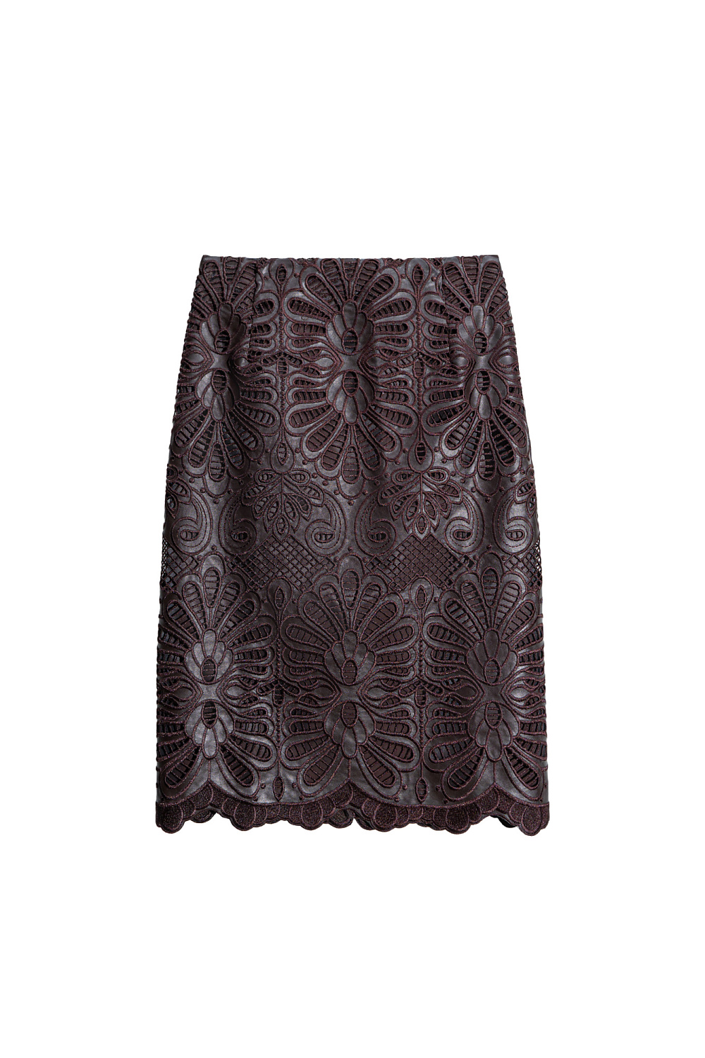 Midi-length skirt with eco-leather lace. Fitted silhouette with zip fastening at the back. The product is lined.