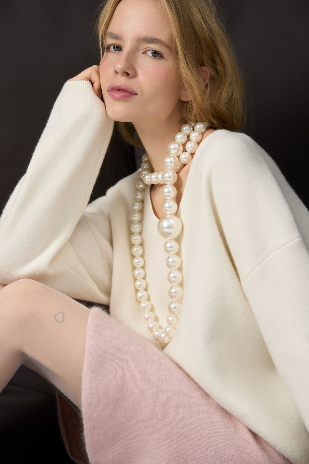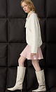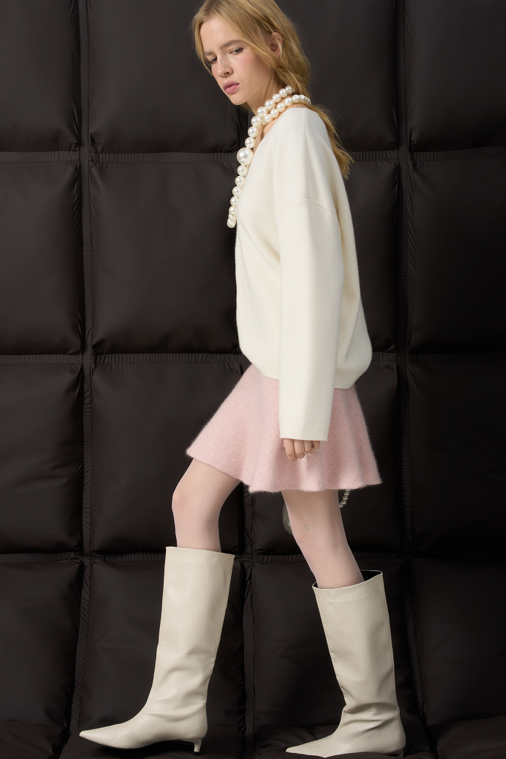 Mini-length knitted skirt made of wool and fox down. Half-sun model with elastic waistband.
