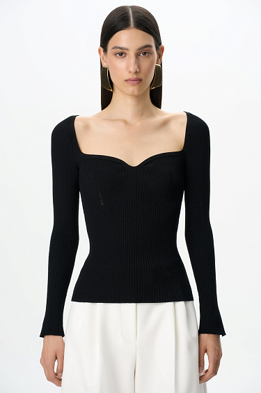 Knitted viscose mini skirt. Fitted silhouette with a small slit on the side.