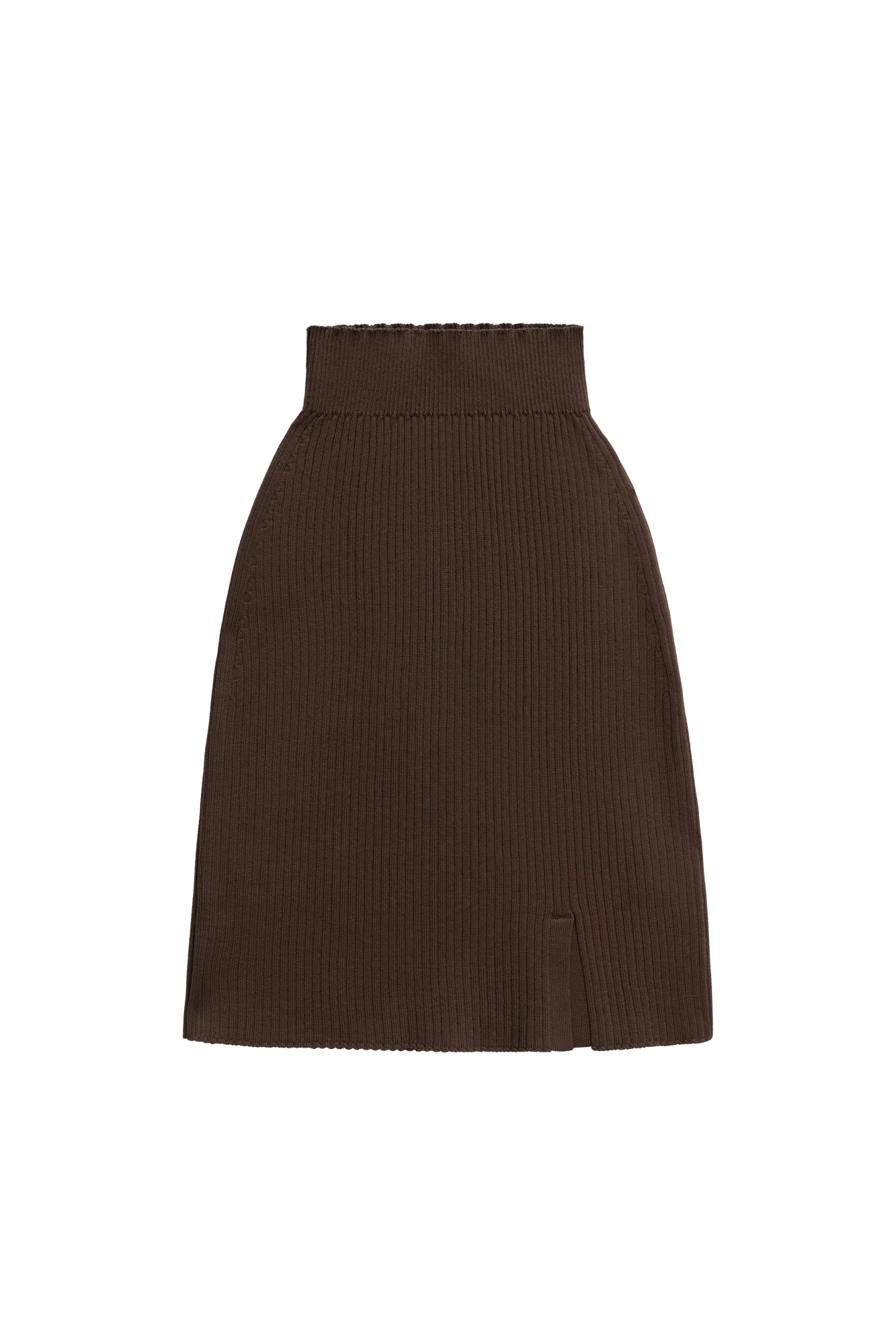 Knitted viscose mini skirt. Fitted silhouette with a small slit on the side.