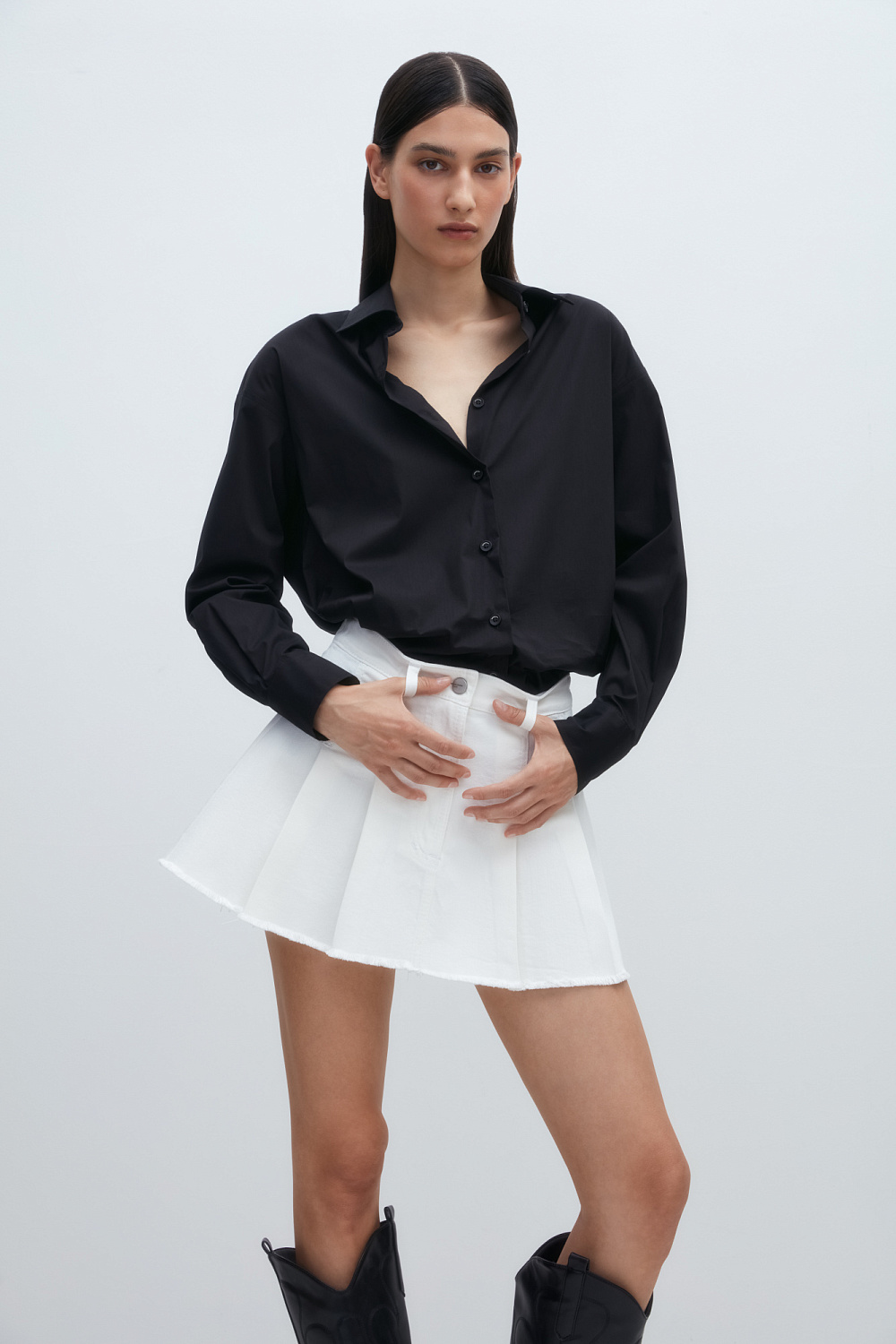 Pleated denim skirt