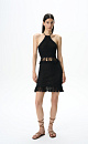100% cotton knit mini skirt with fringe at the hem. You can complete the look with a top in the same style.