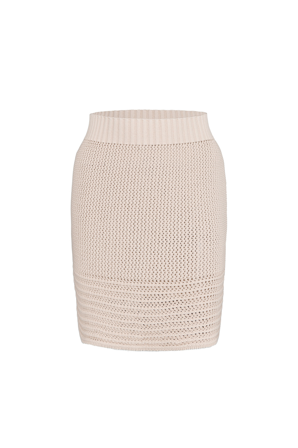 100% cotton knitted mini skirt with elastic ribbed waistband. You can complete the look with a matching top.
