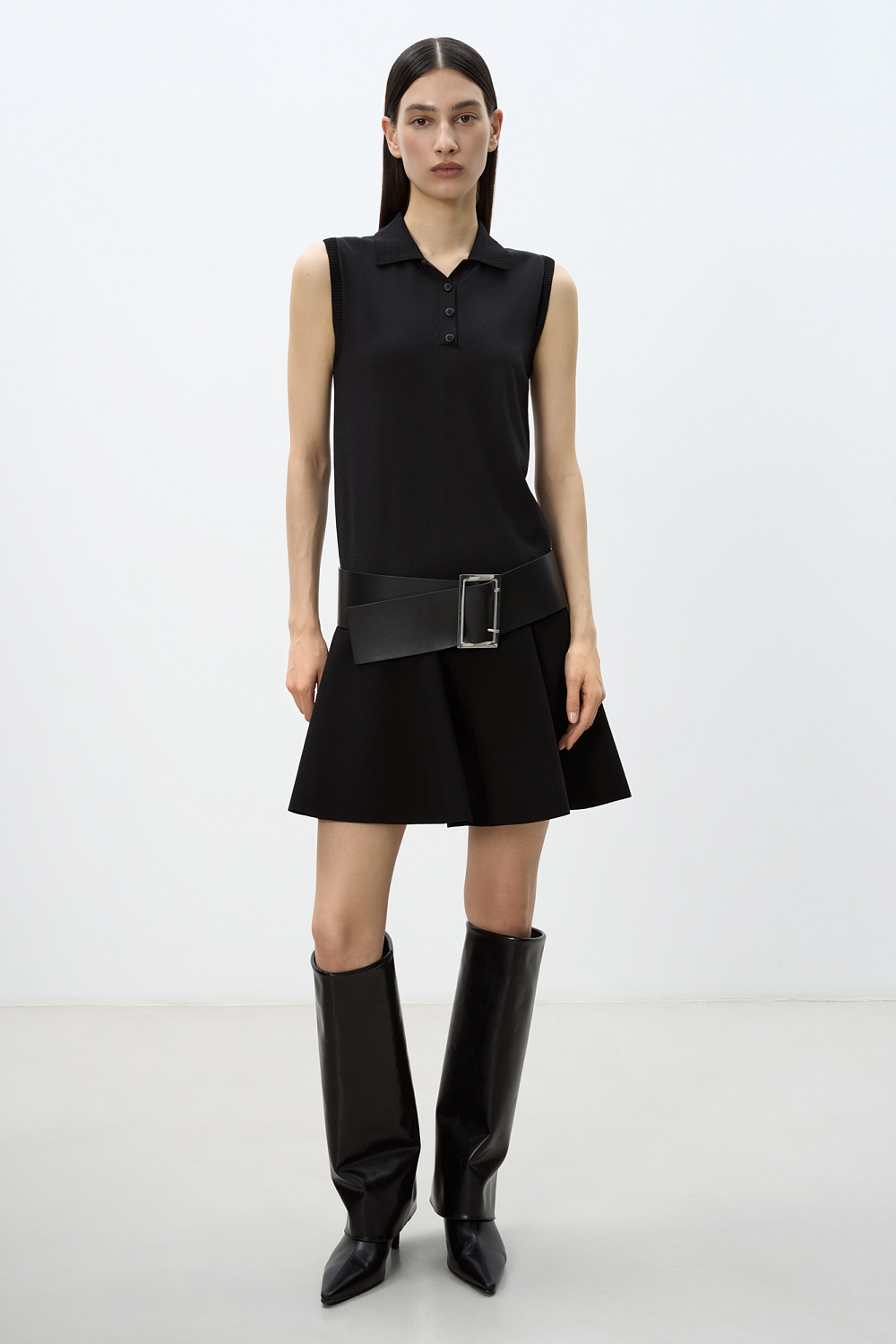 Knitted mini skirt made of viscose. A-line model with elastic waistband.