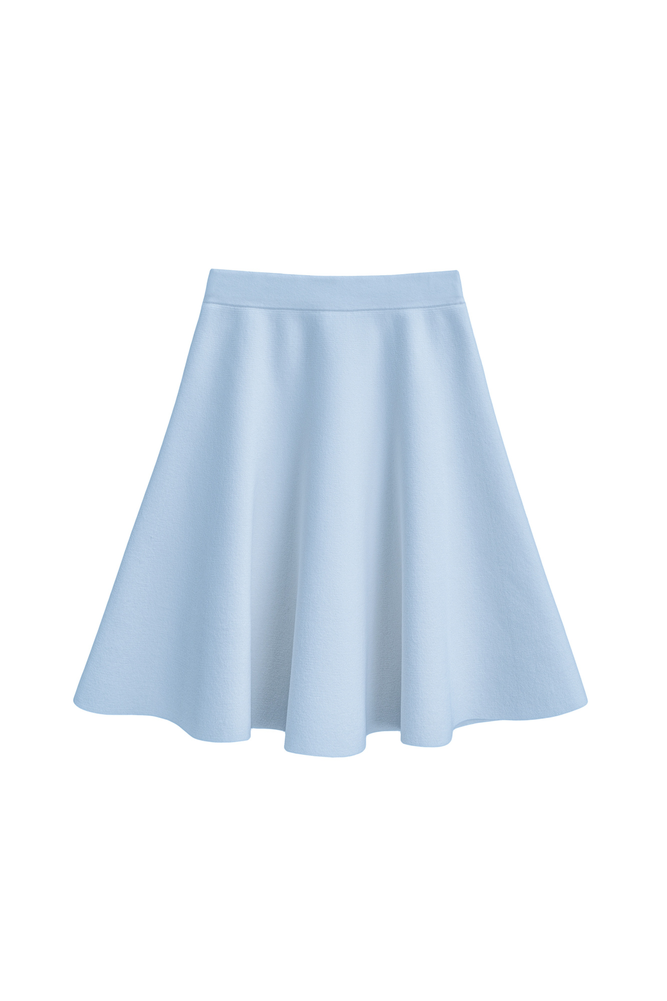 Knitted mini skirt made of viscose. A-line model with elastic waistband.