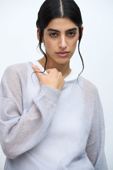 Knitted mini skirt with lurex. Model with elastic waistband. You can complement the look with a top in the same style.