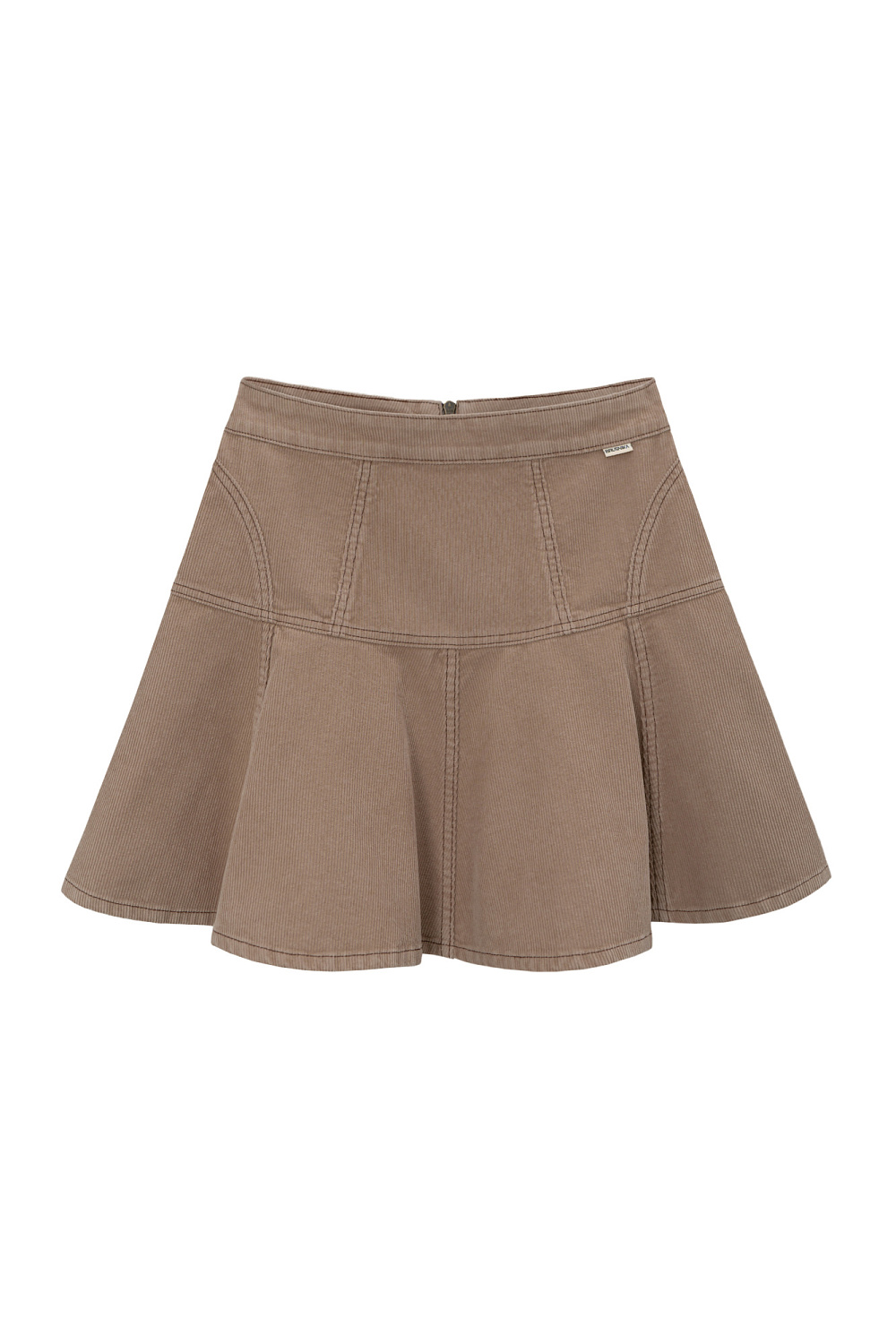 Corduroy mini-length skirt with a branded label at the waist and a zipper at the back. You can complement the look with a bomber jacket.