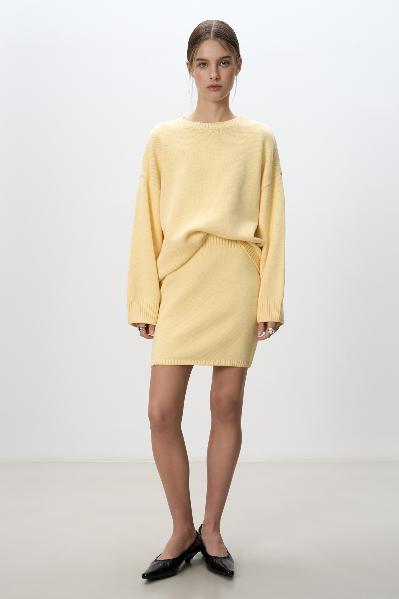 Knitted mini skirt made of 100% cotton. Fitted silhouette with elastic ribbed waistband.